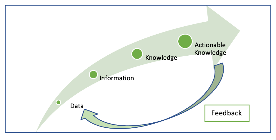 Dengan volume data yang begitu besar yang hampir belum dimanfaatkan, organisasi yang dapat berhasil menciptakan pengetahuan yang dapat ditindaklanjuti dengan waktu yang efektif dapat memperoleh keunggulan yang berbeda dibandingkan pesaing mereka (Lihat Gambar 2). Proses menafsirkan big data dalam konteks memerlukan transformasi informasi yang relevan kepada pengambil keputusan utama untuk mengambil tindakan berdasarkan pengetahuan yang diperoleh. Interpretasi data yang berwawasan dan tepat waktu sangat penting untuk keberhasilan organisasi.